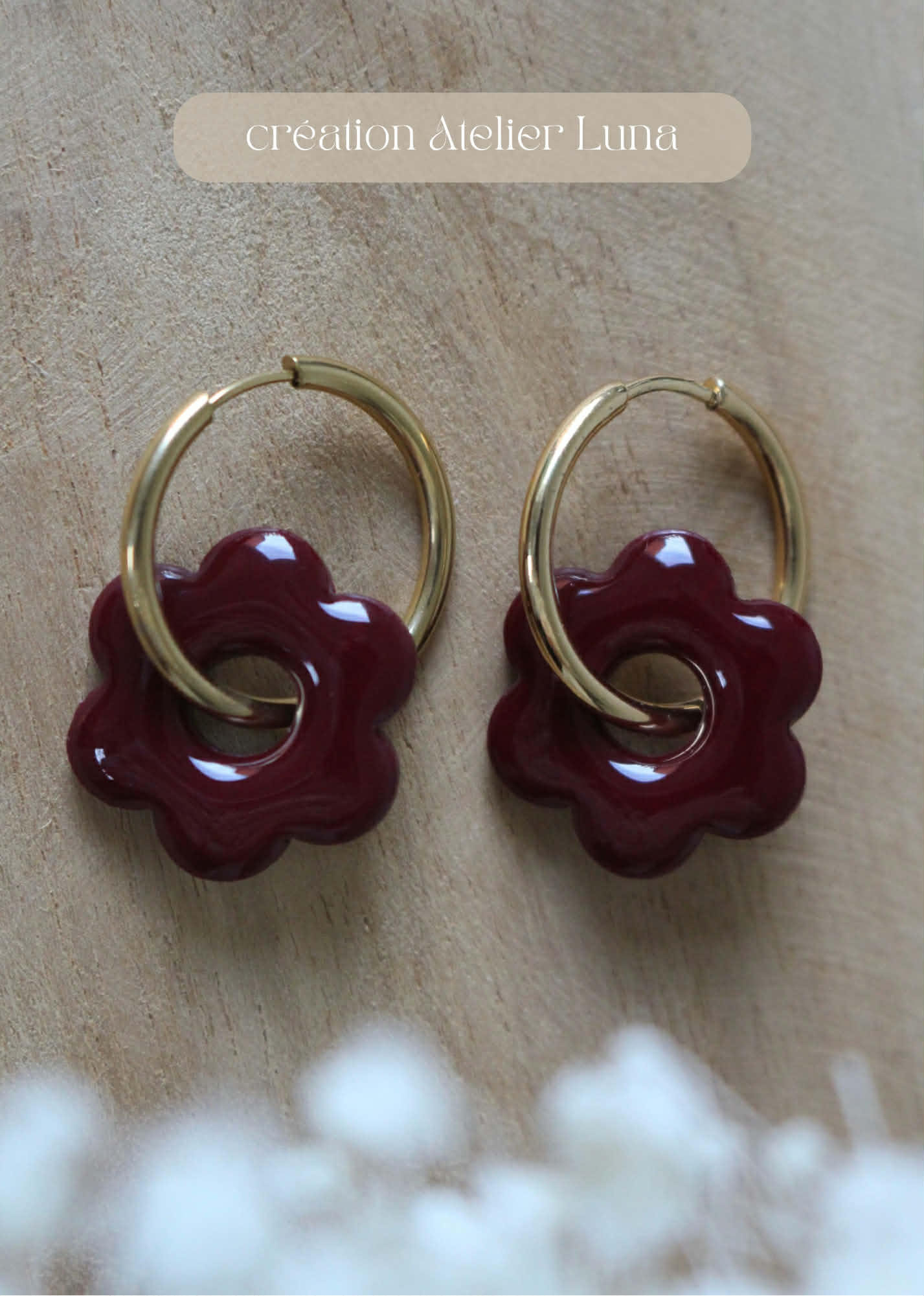 Les pampilles sont réalisées à la main en pâte polymère et revêtement de résine.